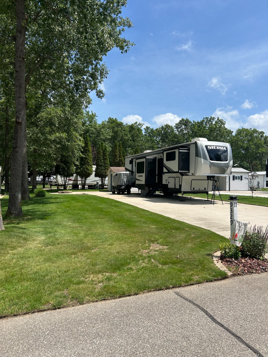 Oversized lot in a wonderful upscale RV park with a neighborhood feel. Seasonal park open May thru October. Includes a charming 2020 Cedar Creek 380 RTH toy hauler with front living room, two sofas with pullouts, two theater seats and a fireplace. Queen bed in back with extra storage underneath. Shed is beautifully finished with granite counter tops, toilet, bath sink and water heater. Very private eating area with retractable screens. Includes propane fire pit and stairs. Contact Sue Gerritsen at (616) 901- 4060 or email gerritsen2831@comcast.net for more information or to schedule a showing.